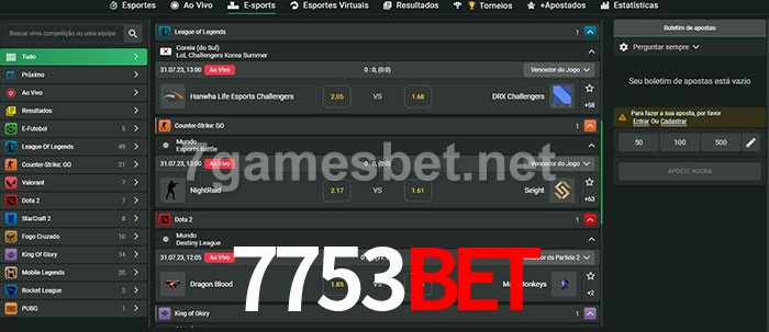 O 7753Bet oferece uma grande seleção de opções de apostas em e-sports com probabilidades competitivas